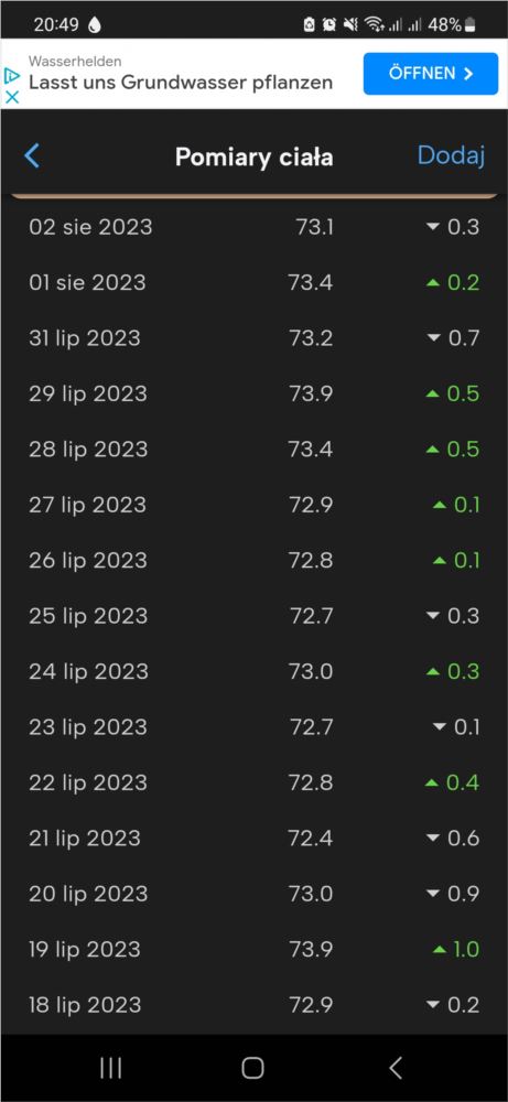 Wrzuć pomiary obwodów ciała, wykonywane rano na czczo w perspektywie całego cyklu treningowego. Wypełnij formularz ankiety działu: