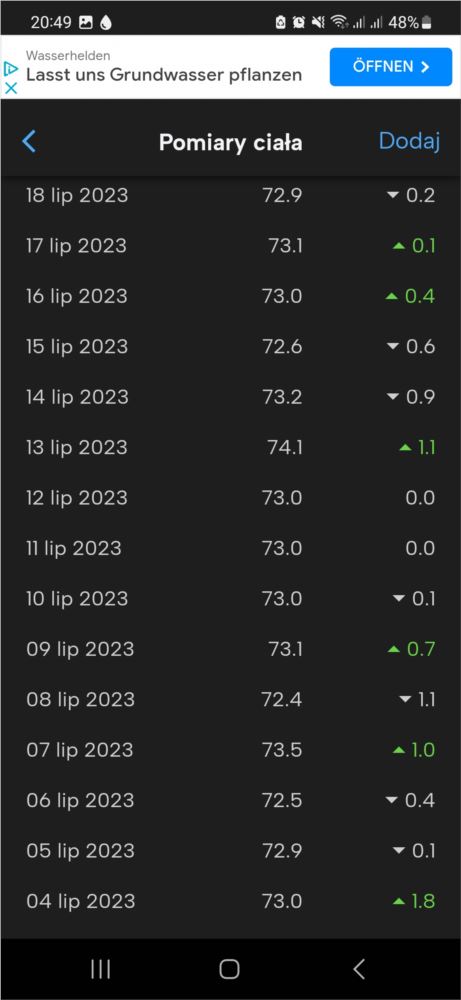 No niby sie zmienia ale bardziej mnie woda zalewa bo wegli jem po 550 600 Waga skacze 72 72 73 72 72 73 i tak csly miesiac zapotrzebowanie jakos 3500 ale ja naprawde duzo sie ruszam celuje w nadwyzje 200 300
