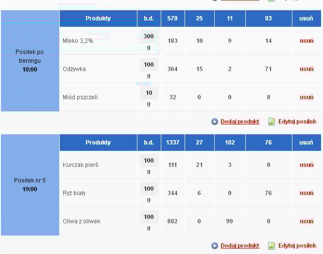 Posiłek do 1h po treningu