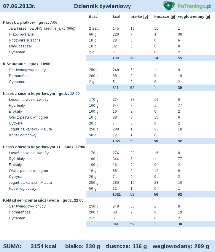 341kcal, 52g białko, 1g tłuszcze, 30g węglowodany
