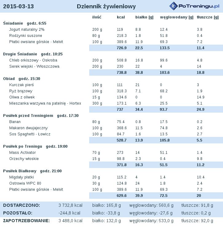 Dieta na masę, proszę o ocenę, ewentualne sugestie i zmiany :)