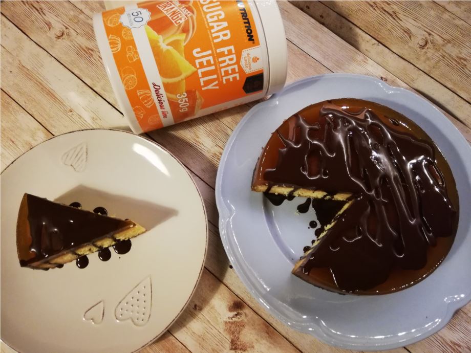W 500 ml wody rozpuszczamy galaretkę i jak zacznie tężeć wylewamy na biszkopt. Na końcu dekorujemy czekoladą roztopioną z olejem kokosowym.