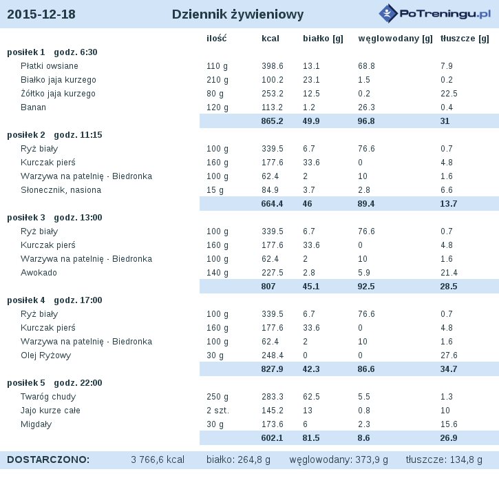 w dni treningowe,po treningu zawsze wlatuje jeszcze 30g białka+kasza jaglana.